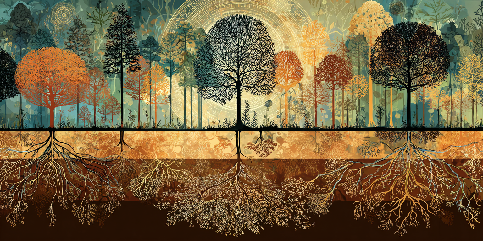 Mycorrhizal networks connect tree roots underground, sharing nutrients, sending chemical signals about threats. Trees that should be competing are cooperating. The forest thinks—slowly, chemically, collectively. No single organism runs it. The intelligence belongs to the relationship.